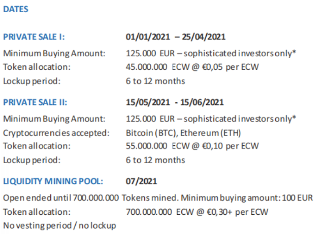 The EcoWatt Token is a finite supply asset, that holds the tokenized beneficiary rights of an equity share in a growing physical renewable energy portfolio. In a nutshell EcoWatt offers an asset backed stable coin that increases in value while offering security, liquidity utility and social impact. Tokenomics are simple. 1 billion Tokens are mined by building a 1 billion Watt Power (Wp) physical asset portfolio. This means that 1 Token equals 1 Watt of renewable power connected to the grid. On top of the asset backing and benefit of a revenue share, the Token will unlock additional utility as the power plant portfolio grows larger and earns more income.